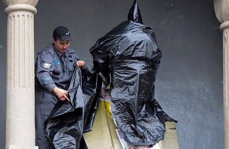Комунальники вирішили обмотати бюст Леніна чорним поліетиленом, щоб перехожі не побачили жовто-блакитного "вождя світового пролетаріату".