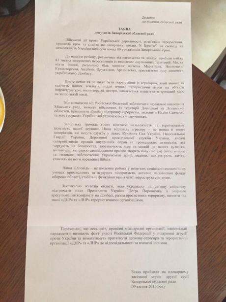Як відомо, раніше облрада визнала "ЛНР" та "ДНР" терористичними організаціями. При цьому у документі було відсутнє формулювання про визнання РФ країною-агресором.