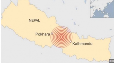 Як повідомляє ВВС, епіцентр землетрусу - у 77 км від столиці країни. У країнах, які межують з Непалом, від землетрусу загинули 30 осіб.