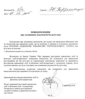 Мін'юст без розгляду повернув документи в.о. голови "Укртранснафти"
