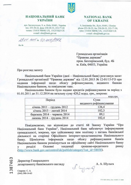 Про це йдеться у відповіді Нацбанку адвокатові, одному з кандидатів у члени Вищої ради юстиції Ростиславу Кравцю, яку він оприлюднив у Facebook.