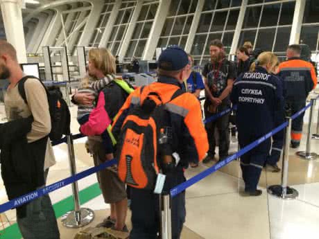 | Крім українців в аеропорту не було нікого. Це спецрейс. Фото УП |