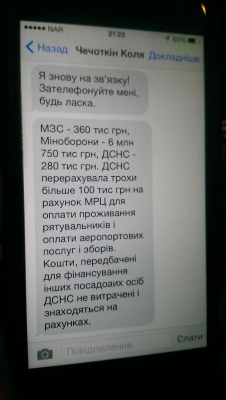 В. о. голови ДСНС також повідомив, що Кабінет Міністрів України виділив для потреб служби на проведену операцію 280 тис. грн, з яких на потреби мобільного рятувального центру ДСНС переведено майже 159 тис. грн, з яких використано 86 тис. грн.