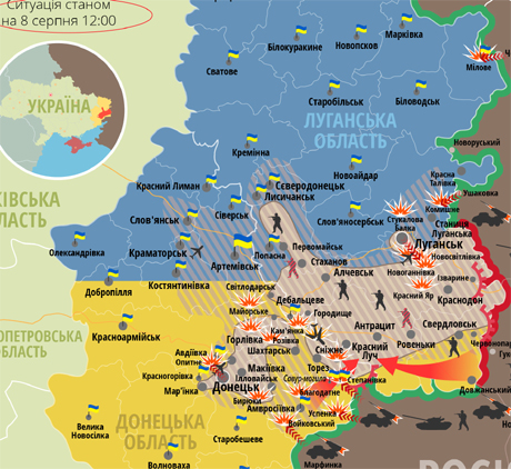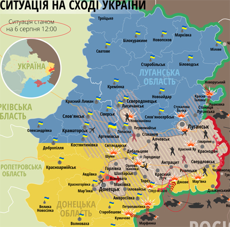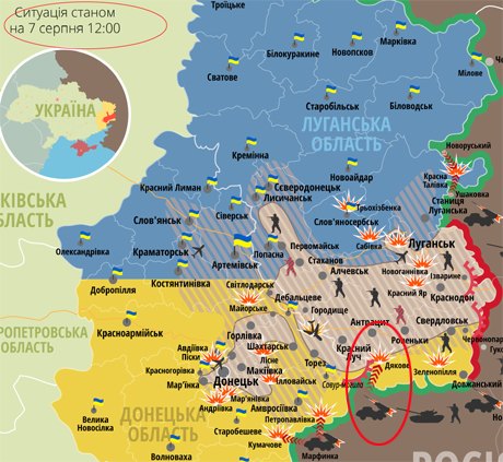 Крім того, обстріли відбувалися також з російської території. Так, згідно з картами АТО, 6 та 7 серпня прикордонний пункт Дьякове обстрілював ся з російської території.