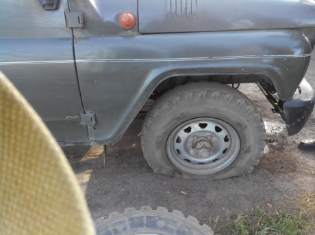 УАЗ, на якому з робочої поїздки офіцери поверталися в штаб СЦКК в Соледарі, отримав серйозні пошкодження: пробито переднє колесо, радіатор, в декількох місцях пошкоджений корпус автомобіля.