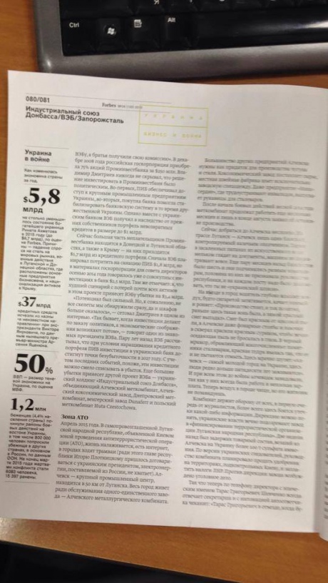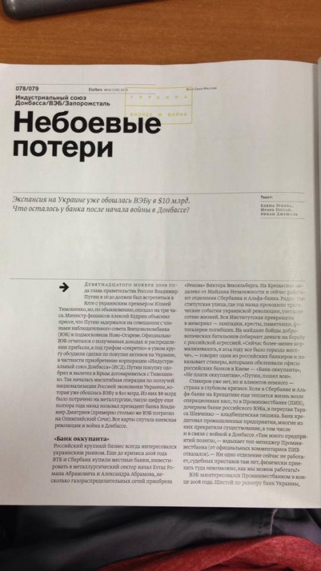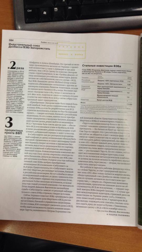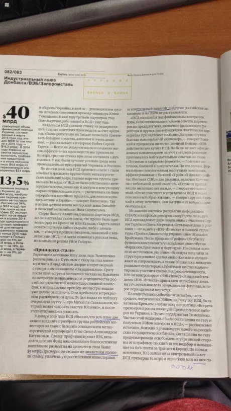 Втім РБК надало "Українській правді" фотографії статті у російському "Forbes" про ІСД і Внешэкономбанк.