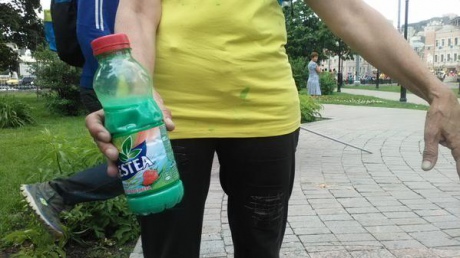 За її словами, нападники облили пікетників зеленкою і повалили на землю активіста Марка Гальперіна.