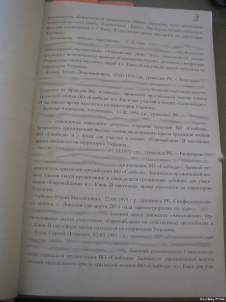 До списку потрапили відомі правозахисники, активісти і звичайні громадяни. Серед підозрюваних є люди, які вже так чи інакше піддавались погрозам чи були притягнуті до відповідальності "новою" кримською прокуратурою.