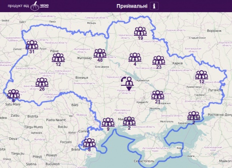 Рух "Чесно" запустив інтерактивну мапу приймалень народних депутатів за адресою pryjmalni.chesno.org.
