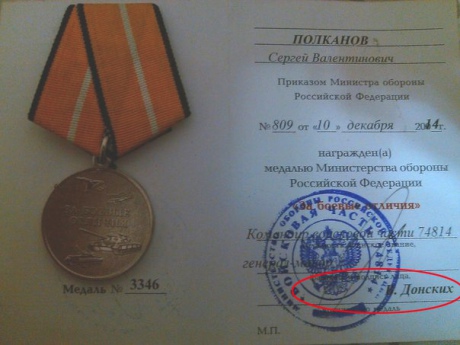 Але після повернення з України Полканов у грудні 2014 р. одержав медаль Міністерства оборони РФ "За бойові заслуги" за підписом того самого генерал-майора Донських, який у примусовому порядку відправляв військовослужбовців у відрядження.