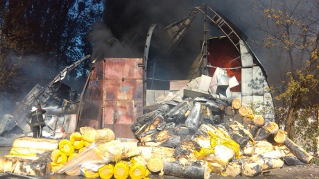 По прибуттю пожежних за місцем виклику о 09:50 було встановлено, що полум’ям охоплено металевий ангар розміром 15х20 м, який використовується як складське приміщення для зберігання мінеральної вати та пінопласту.