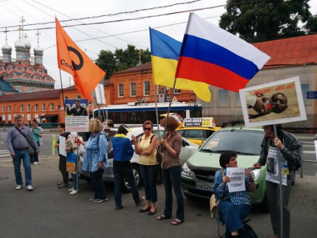 Як повідомляє УНІАН, близько 20 активістів руху "Солідарність" вийшли до метро "Полянка" з плакатами: "Агресія проти України, криза в Росії - Путіна у відставку", "Свободу Надії Савченко", "Маріуполь - це Україна".