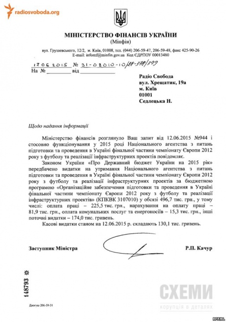 Як зазначається, в державному бюджеті на 2015 рік передбачено 496,7 тисяч гривень видатків на утримання Нацагентства з питань підготовки та проведення фіналу Євро-2012 та реалізації інфраструктурних проектів.