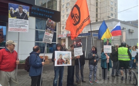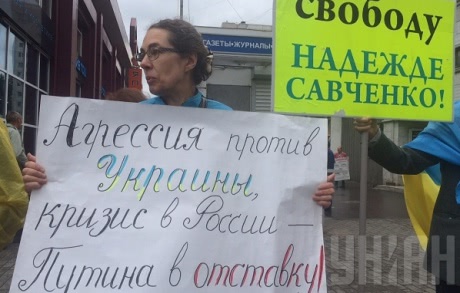 Близько 25 активістів руху "Солідарність" вийшли до метро "Добринінська", учасники тримали в руках плакати: "Свободу Надії Савченко", "Маріуполь - це Україна", "З війною треба закінчувати", "Агресія проти України, криза в Росії - Путіна у відставку!".