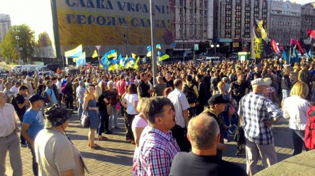 -Rewolucja! Jedna rasa, jeden naród, jeden kraj, to Ukraina! - skanduje Prawy Sektor. Kijów pic.twitter.com/GKJfWF0l46