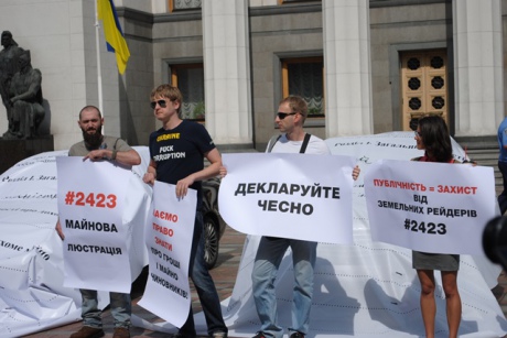 Активісти вимагали включити у порядок денний законопроект №2423, що дозволить зробити цю інформацію публічною.