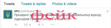 Як відомо, в понеділок був зламаний твіттер РНБО, в якому постили також фейкові повідомлення нібито від імені "Правого сектора".