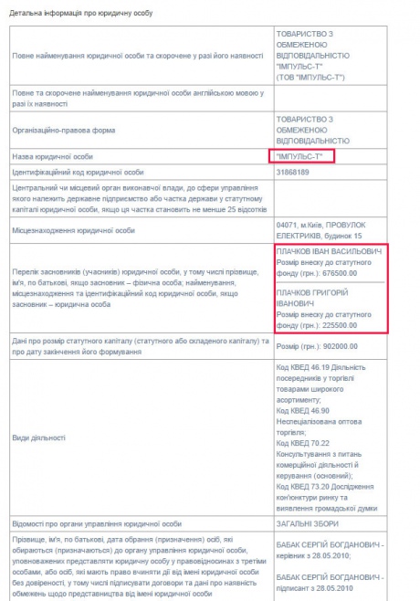 Ще одним співвласником акцій є ТОВ Імпульс-Т, засновником якого володіють також батько та син Плачкови.