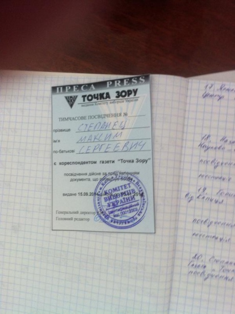 Разом з тим спостерігачі повідомляють, що "журналістів" з підробленими посвідченнями "Точка зору" за допомогою міліції вивели з однієї з дільниць.