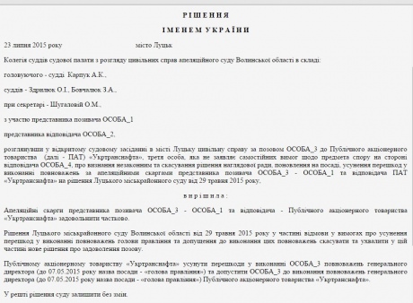 Про це йдеться в рішенні апеляційного суду Волинської області від 23 липня 2015 року.