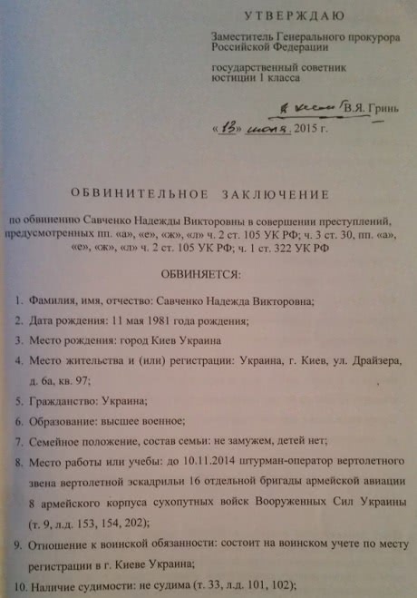 На сайті адвоката Надії Савченко Марка Фейгіна викладено повний текст обвинувального висновку по справі українки, щоправда на сайт здійснюються хакерські атаки.