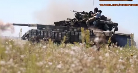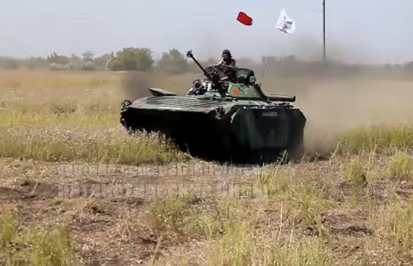 На відео, розміщеному у мережі 16 серпня, зафіксовано тактичні навчання і стрільби, при цьому зображення техніки, яка потрапляє в кадр, "відредаговано" - тактичні позначки на танках "заліплено" зеленими прямокутниками.