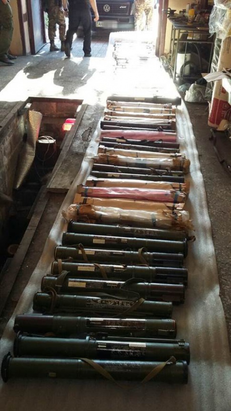 Зі схрону вилучено 65 реактивних гранатометів, автомат Калашникова, велику кількість набоїв різних калібрів, 37 гранат різних типів із запалами, тротилові шашки загальною вагою понад три кілограми, 4 протипіхотні міни, пластичну вибухову речовину ПВ5А, 28 магазинів до АК 74 та ін.