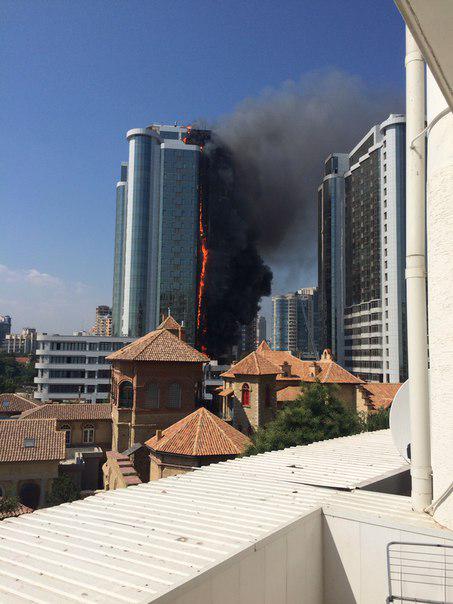 "З верхніх поверхів пожежа розповсюдилася до першого. Горить обшивка. Вогонь розростається. Пожежні можуть досягти тільки до 7 поверху. Пожежу гасять за допомогою двох висотних драбин 30 і 50 метрів. Але проблема полягає в тому, що в рукавах не вистачає тиску, а в самій будівлі не передбачена внутрішня система пожежогасіння", - йдеться у повідомленні.