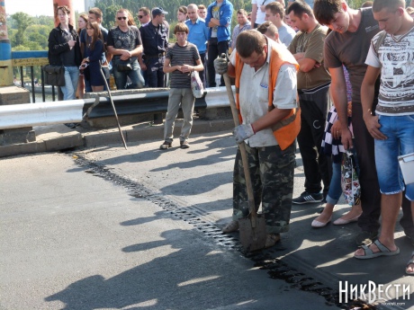 За попередньою оцінкою, причиною стало перевантаження асфальтного покриття або пошкодження розвідного механізму під час ремонту. Комунальні працівники і перехожі намагалися розігріти місце стику двох частин моста і зняти з нього асфальт ломами і лопатами.