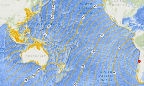 Тихоокеанський центр попередження про цунамі, повідомляє, що крім цунамі заввишки більше трьох метрів в Чилі, хвилі від одного до трьох метрів можливі у Французькій Полінезії. І від 0,3 до одного метра для деяких берегів Нової Зеландії, Фіджі, Гаваї, Мексики, Перу, Еквадору, Японії, Нової Каледонії, Самоа, Росії та інших країн Тихоокеанського регіону.