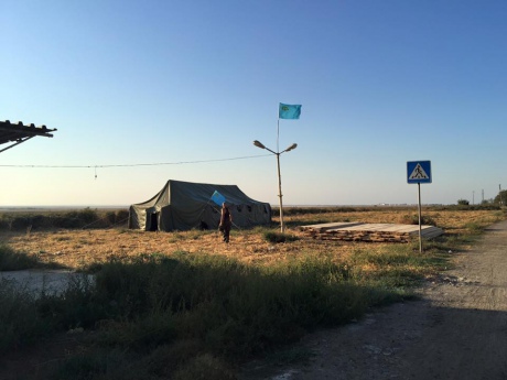 У н.п. Чонгар (Херсонська область) на адмінкордоні з Кримом учасники "Громадянської блокади Криму" перекривають дорогу та облаштовуються для проведення тривалої акції.