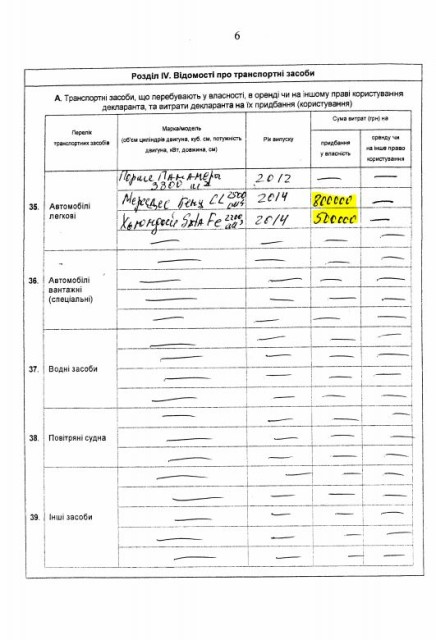 У декларації за 2013 рік він вказував, що має на рахунках 5,48 млн гривень (при чому всі внесені в 2013 р. – коли сукупний дохід родини склав 664 тис грн.) Тобто за 2014р. сума коштів на рахунках збільшилася на 7,25 млн. – що в понад п’ять разів більше за офіційно задекларований дохід 1,31 млн грн.