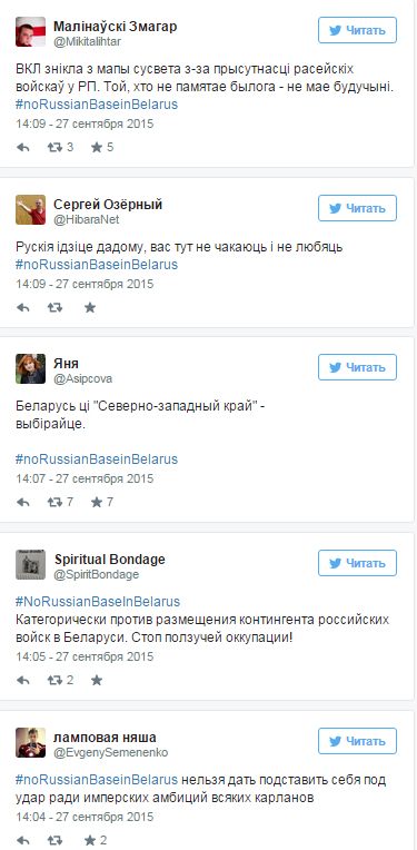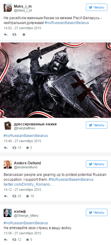 Білоруси організували в соцмережах акцію проти російської військової бази: хештег #noRussianBaseinBelarus вже вийшов на перше місце.