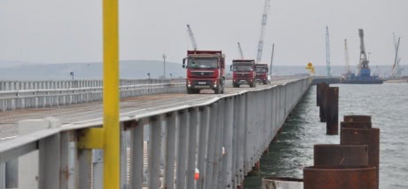 По тимчасовому мосту через Керченську протоку проїхали перші вантажівки