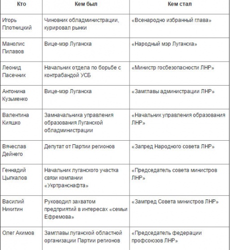 "Загалом,"Луганська народна республіка" - це просто ребрендинг представників клану Єфремова. Як ми бачимо, практично всі вони залишилися на своїх постах, ніхто з них не був засуджений в Україні. З деякими нові влади навіть співпрацюють", - підкреслює газета.
