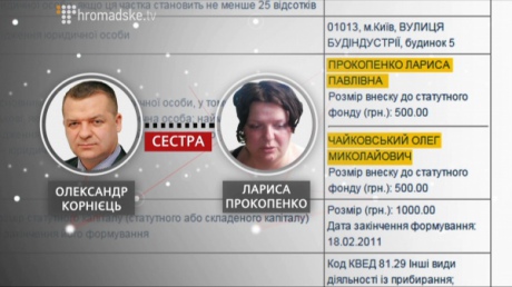 Як стверджує підприємець, засновника від прокурора йому нав'язали досить швидко - це виявилася сестра Корнійця Лариса Прокопенко.