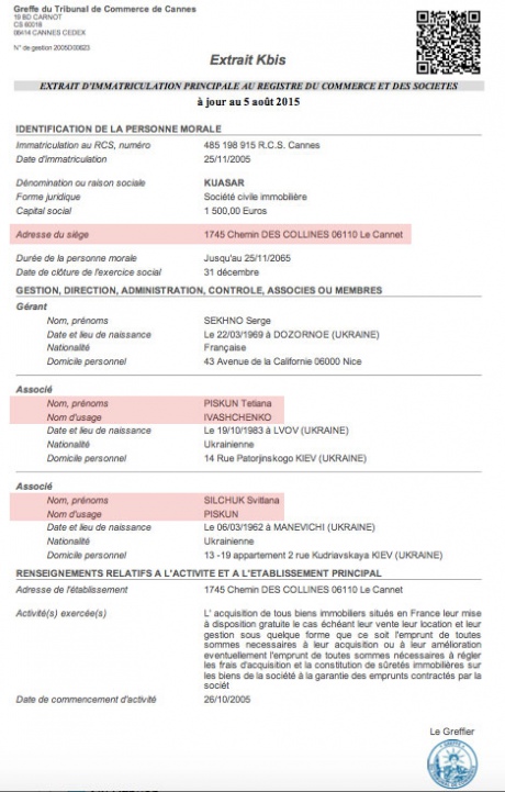 Лещенко наводить витяги з реєстру французьких компаній, а також кадастру міста Ле Канне. Земельна ділянка Піскуна має номер 181.