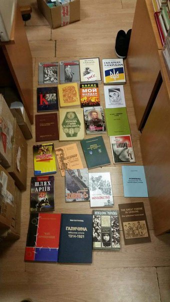 | Вилучене при обшуку в Бібліотеці української літератури в Москві. Фото - Дмитро Захаров |