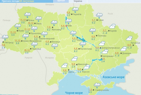 У Києві - вночі без опадів, удень невеликий дощ. Температура повітря вночі 0-2° тепла, вдень 6-8°.
