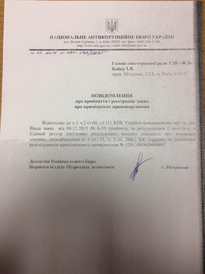 Це підтверджується повідомленням НАБУ, яке є в розпорядженні "Української правди".