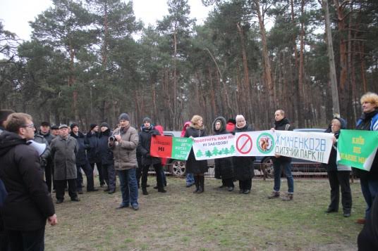 У Києві 20 грудня місцеві мешканці перекрили проїжджу частину, протестуючи проти забудови парку по вул.Генерала Жмаченка, 28.