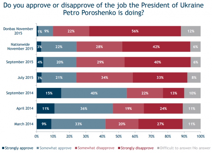 Загальна підтримка дій президента Петра Порошенка станом на листопад 2015 року становила 25%.