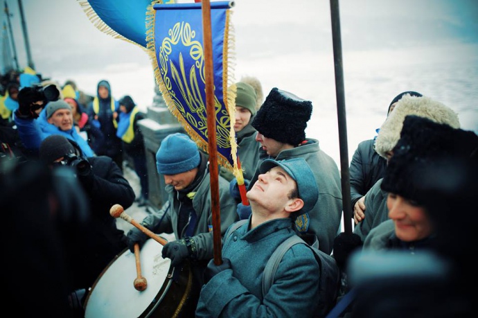 Крім того, активісти запалили свічки під час хвилини мовчання за загиблими на Майдані в січні-лютому 2014 року та загиблими українськими бійцями і громадянами під час АТО, повідомляє Радіо Свобода.