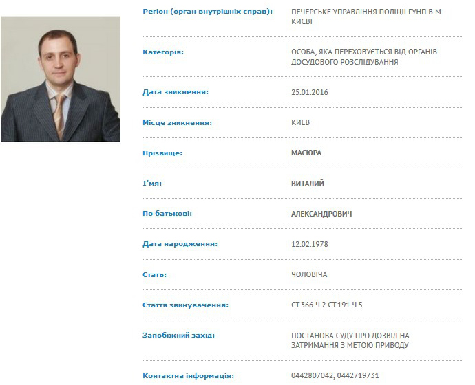 Поліція оголосила в розшук першого екс-заступника голови "Дельта Банку" Віталія Масюру.