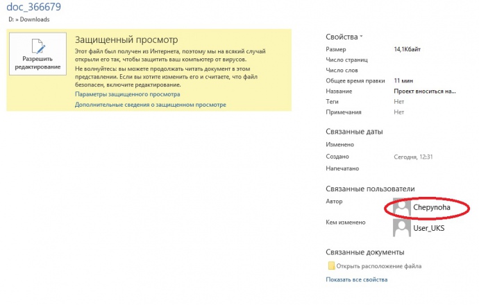 "Українська правда" також завантажила проект постанови №3537 про відставку Абромавичуса із сайту Верховної Ради. Справді, у властивостях документа автором вказано Chepynoha.