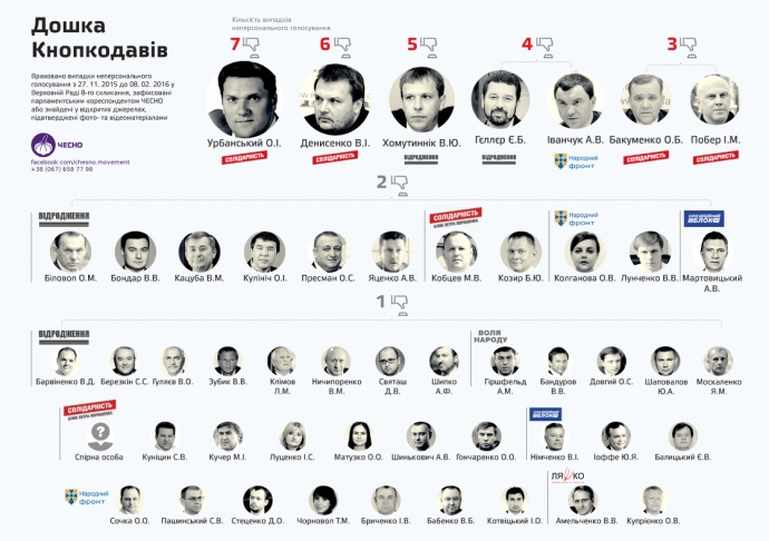 Такі висновки за період із 27 листопада 2015 року до 8 лютого 2016 року поширив для ЗМІ рух "Чесно" напередодні голосування за "антикнопкодавний" проект закону №1895.