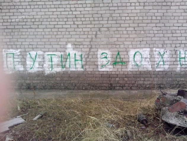 "На початку лютого в окупованому російсько-терористичними військами м.Свердловськ Луганської області з’явились написи "Путин здохни" та "Россияне вон!" поблизу центральної частини міста, в районі розміщення підрозділів ЗС РФ", - зазначили у ГУР Міноборони.