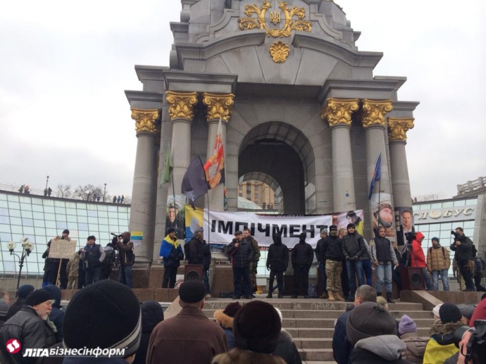 Учасники акції на Майдані розсунули щити, що стояли в центрі міста, щоб звільнити площу перед стелою, винесли їх на проїжджу частину і перекрили Хрещатик з боку вулиці Інститутської і Городецького.