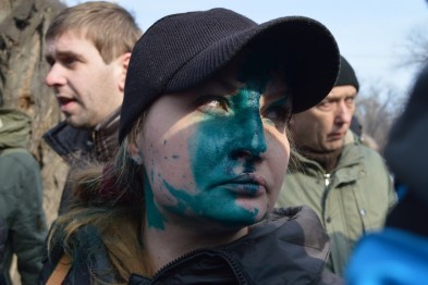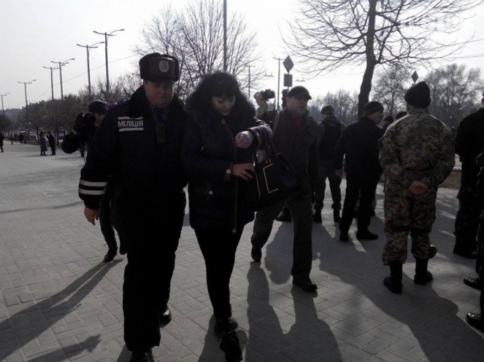 "Дві жінки-координатора мітингу (серед яких скандально відома "антимайданщиця" Катерина Уманець) затримані поліцією. Один з автобусів закидали яйцями. ... Мітинг так і не відбувся", - зазначає ЗМІ.