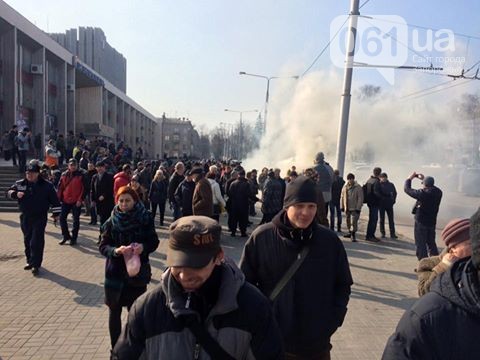 За повідомленням ЗМІ, до будівлі Запорізької мерії 4 автобуси з противниками повалення Леніна прибули близько 11:00.